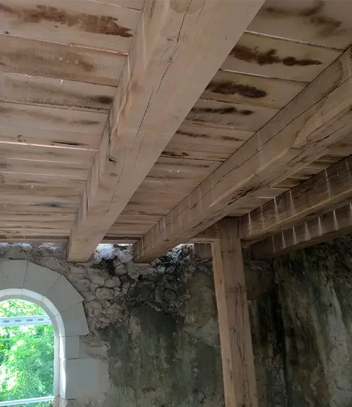 - Le remplacement d’éléments abîmés (poutres, entraits, pannes...)