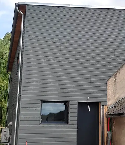 - Bardage bois ou mixte bois-métal, pour un rendu moderne et robuste